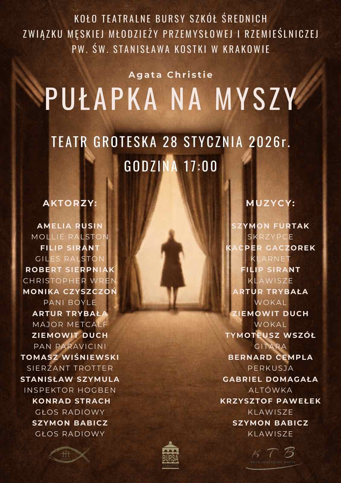 Związek Męskiej Młodzieży Przemysłowej i Rzemieślniczej pw. św. Stanisława Kostki wespół z Bursą Szkół Średnich tego Związku zapraszają na uroczyste obchody Święta Patrona św. Stanisława Kostki, które odbędą się w środę 28.01.2026 r. o godz. 17.00 w Teatrze Groteska przy ul. Skarbowej 2 w Krakowie ...